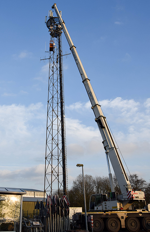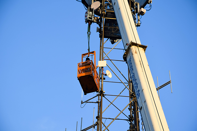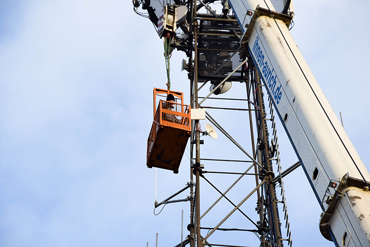 Installationen auch in großen Höhen, unterstützt durch Autokräne und Arbeitsbühnen, werden von unseren erfahrenen Technikern seit vielen Jahren routiniert ausgeführt.