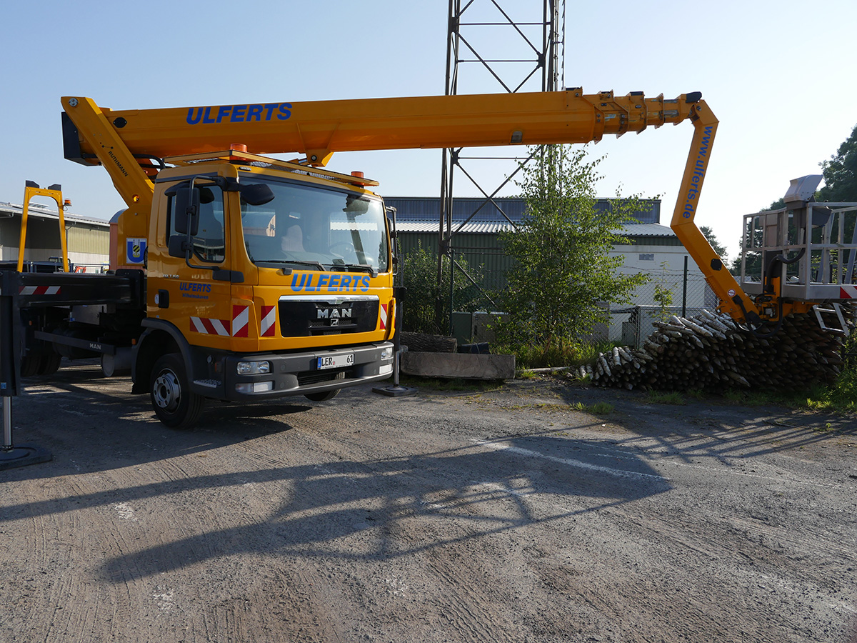Installationen auch in großen Höhen, unterstützt durch Autokräne und Arbeitsbühnen, werden von unseren erfahrenen Technikern seit vielen Jahren routiniert ausgeführt.