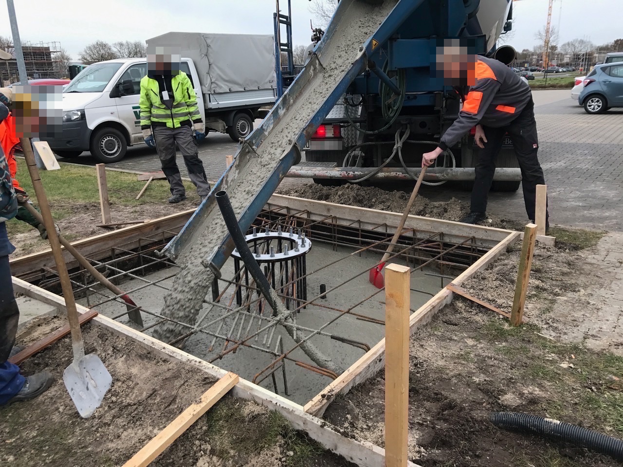 Am Freitag, den 03.03.2017 wurde das Fundament mit dem Mastfuß direkt neben der Lagerhalle gegossen.