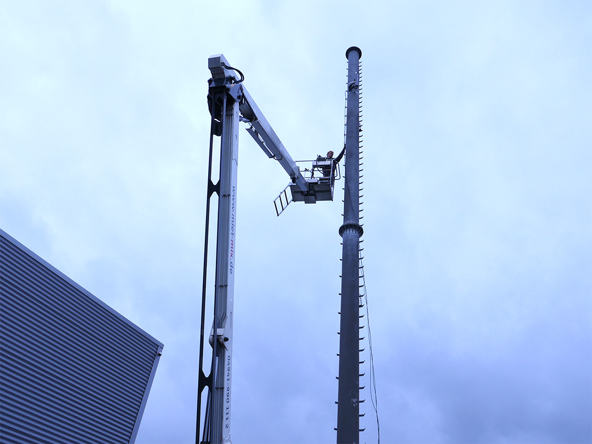 Nachdem der Funkmast auf dem OMG Firmengelände Anfang März aufgestellt wurde, erfolgte nun die erste Installation einer Funkkomponente.