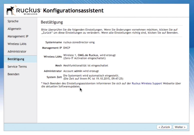 - ZoneDIrector 1200 – Bestätigung