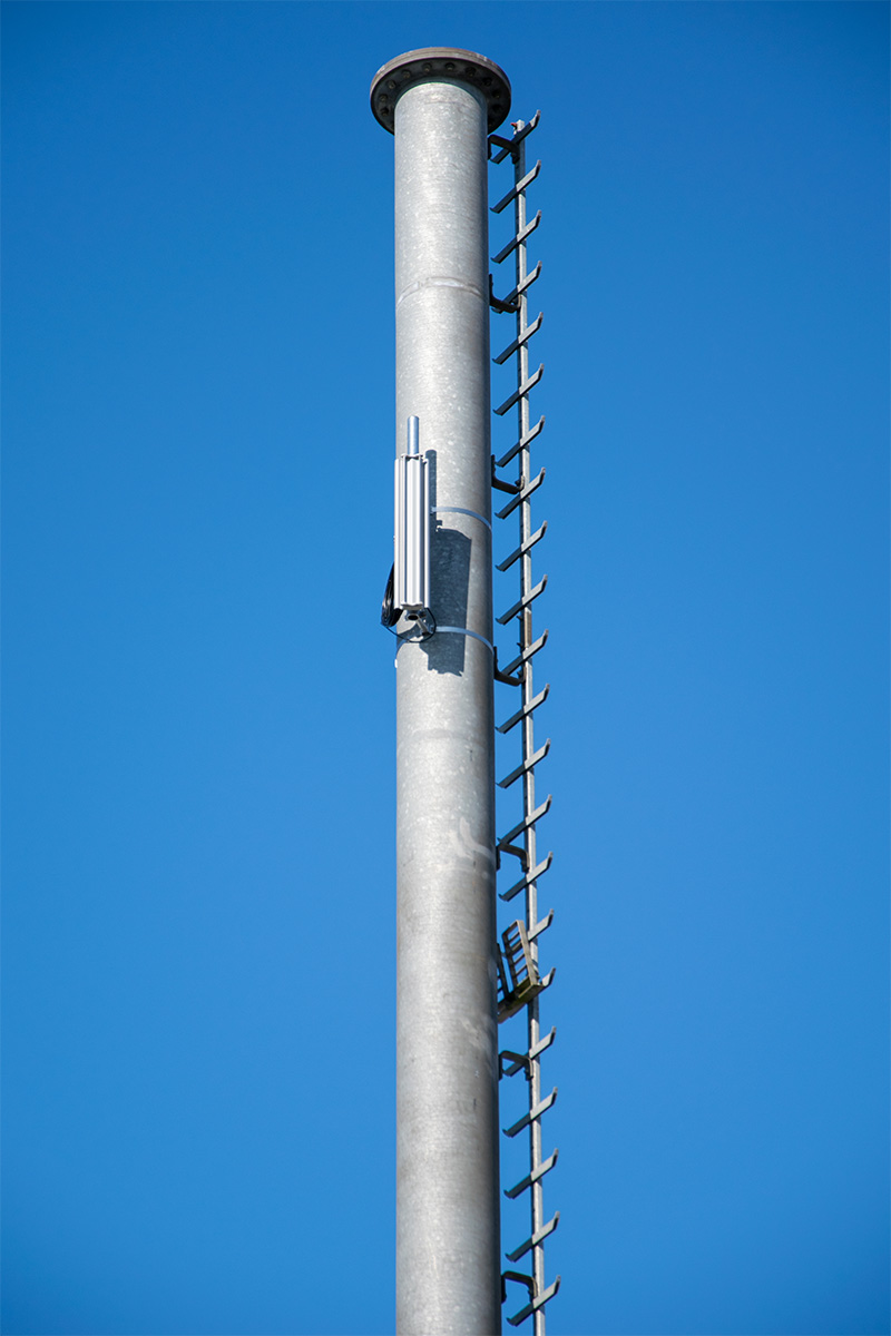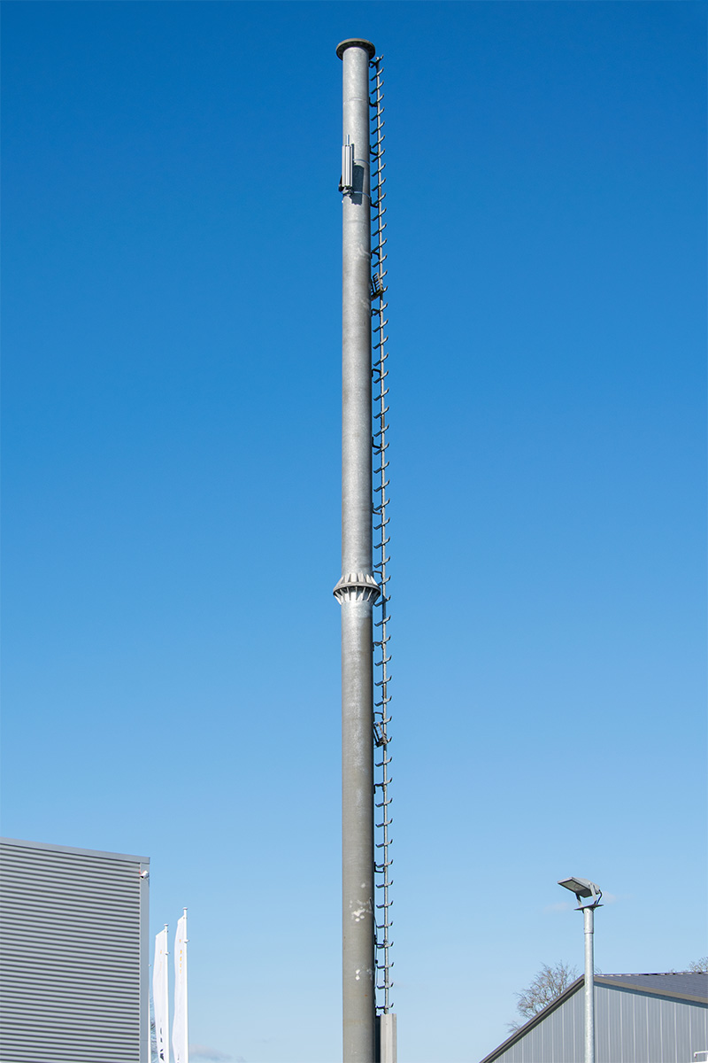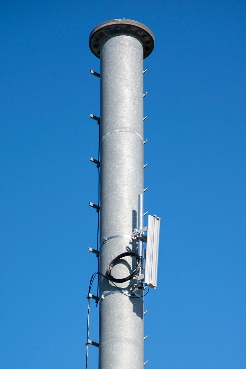 Für die Versorgung des anliegenden Gewerbegebietes wurde eine Ubiquiti Sector-Antenne mit einer Ubiquiti Rocket konfiguriert und auf einer Höhe von ca. 17 Metern verbaut.